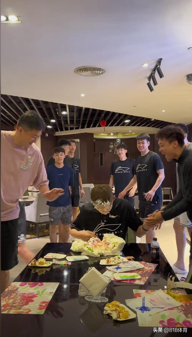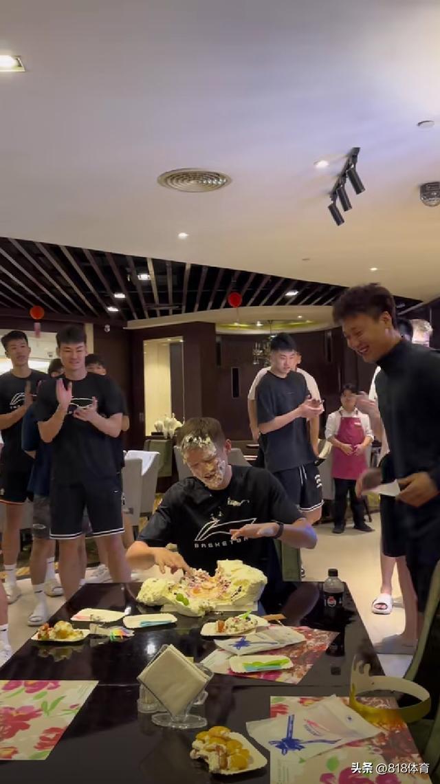 老六!杜锋率广东队为队长周鹏庆生,赵睿联手训练师拍蛋糕得意大笑