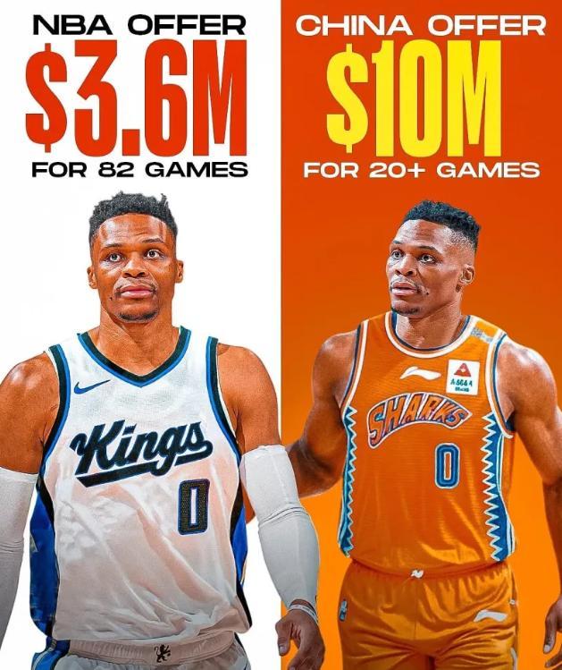 前几天的时候,有美媒透露了威少收到了来自CBA球队报价的消息,虽然随后美媒表示威少已经拒绝了该报价,不过这件事依旧引发了不少球迷关注。就在日前,美媒Clutch Points又透露了这件事的具体消息,表示有CBA球队为威少开出了年薪1000万-1400万美元的待遇。随后萨克拉门托电台主持人Dave Carmichael表示,这份合同威少只需要打半个赛季,出场数大概在23场,若帮助球队打进季后赛薪资还能上涨。至于是哪支球队对威少进行了报价,虽然美媒并没有提及,不过却配上了威少身穿上海男篮球衣的照片。这样就比较明显了,报价威少的球队基本上就是上海男篮。不过也有不少球迷对这份报价有质疑,表示CBA联赛的外援工资帽才425万美元,1000万到1400万美元报价威少,这有些难以让人相信。