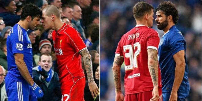比赛上半场,科斯塔与利物浦名宿马丁·斯克特尔在一次拼抢中发生身体碰撞。科斯塔随即起身,直接冲向对方,两人几乎发生正面冲突,所幸裁判及时介入将二人分开。