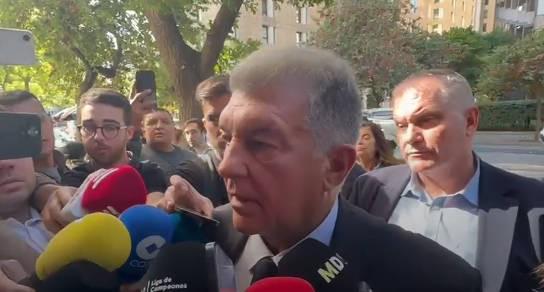 北京时间明天凌晨00:45,巴萨将迎来欧冠联赛阶段第三轮主场对阵奥林匹亚科斯的比赛,赛前,拉波尔塔在抵达蒙特惠奇体育场后接受了媒体的采访,谈到了与Uber的商业协议引发的争议、即将在迈阿密的比赛、弗里克的禁赛等问题。